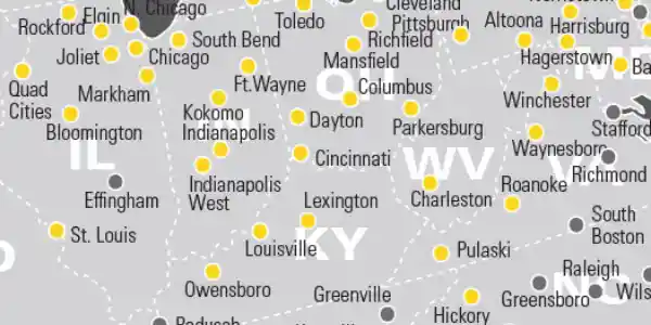 Estes offers next-day direct LTL freight shipping from Pittsburgh to Philadelphia, Charlotte, Cincinnati, Cleveland, Columbus, Baltimore, Toledo, and Wilmington, DE, as well as next-day LTL to Indianapolis, Detroit, Lexington, Louisville, Richmond, Norfolk, New Haven, and more. Learn about the benefits of shipping through this hub terminal.